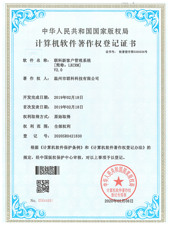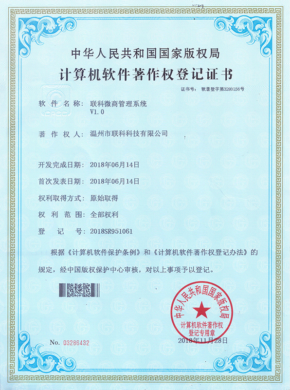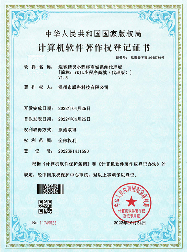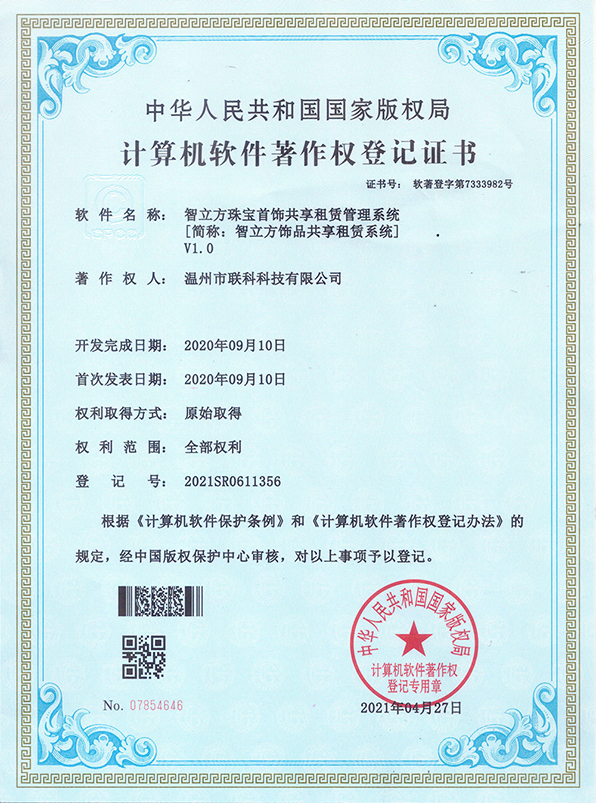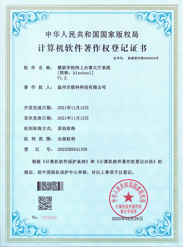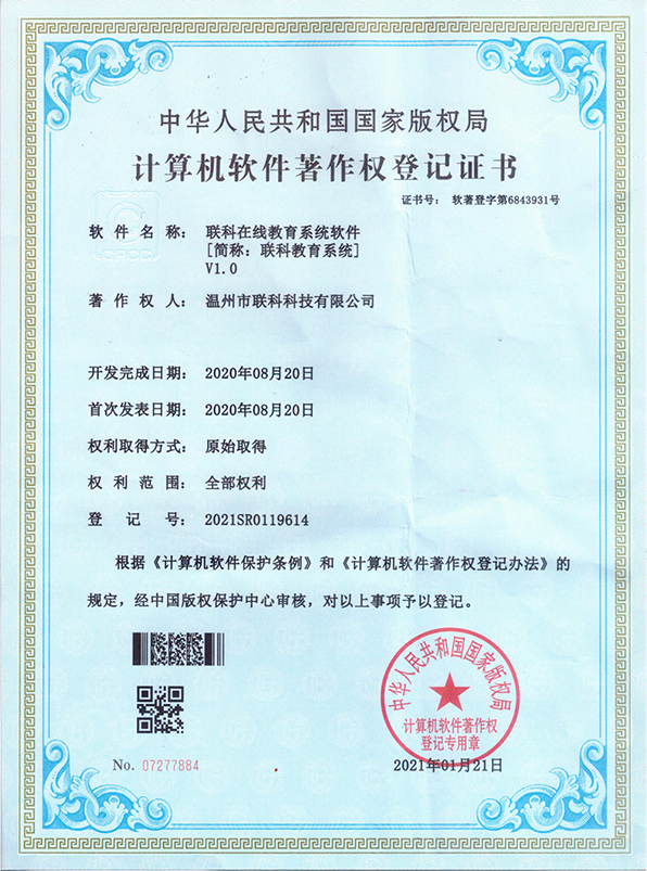 聯(lián)科教培行業(yè)智慧運(yùn)營(yíng)系統(tǒng)V1.0登記證書(shū)(2022R11L2324133)
