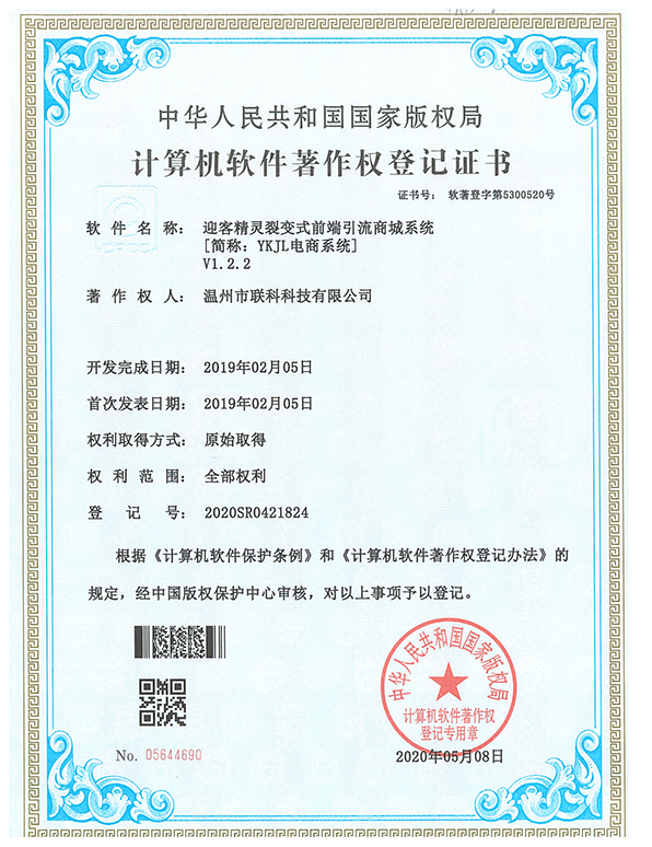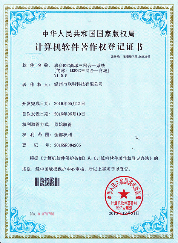 慧聯(lián)O2O商城系統(tǒng)軟件著作權(quán)證書(shū)
