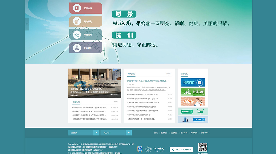 溫州醫(yī)科大學(xué)附屬眼視光醫(yī)院成立于1998年,2009年經(jīng)省衛(wèi)生廳批準(zhǔn)增掛“浙江省眼科醫(yī)院”,2010年開(kāi)設(shè)杭州院區(qū),是浙江省首家三級(jí)甲等眼科專(zhuān)科醫(yī)院。醫(yī)院承擔(dān)臨床醫(yī)療、醫(yī)學(xué)教育、醫(yī)學(xué)科研、預(yù)防保健等任務(wù),是國(guó)家眼部疾病臨床醫(yī)學(xué)研究中心、眼視光學(xué)和視覺(jué)科學(xué)國(guó)家重點(diǎn)實(shí)驗(yàn)室、國(guó)家眼視光工程技術(shù)研究中心、國(guó)家藥監(jiān)局眼科疾病醫(yī)療器械和藥物臨床研究與評(píng)價(jià)重點(diǎn)實(shí)驗(yàn)室,以及國(guó)家眼科學(xué)臨床重點(diǎn)專(zhuān)科、教育部近視防控與診治工程研究中心。