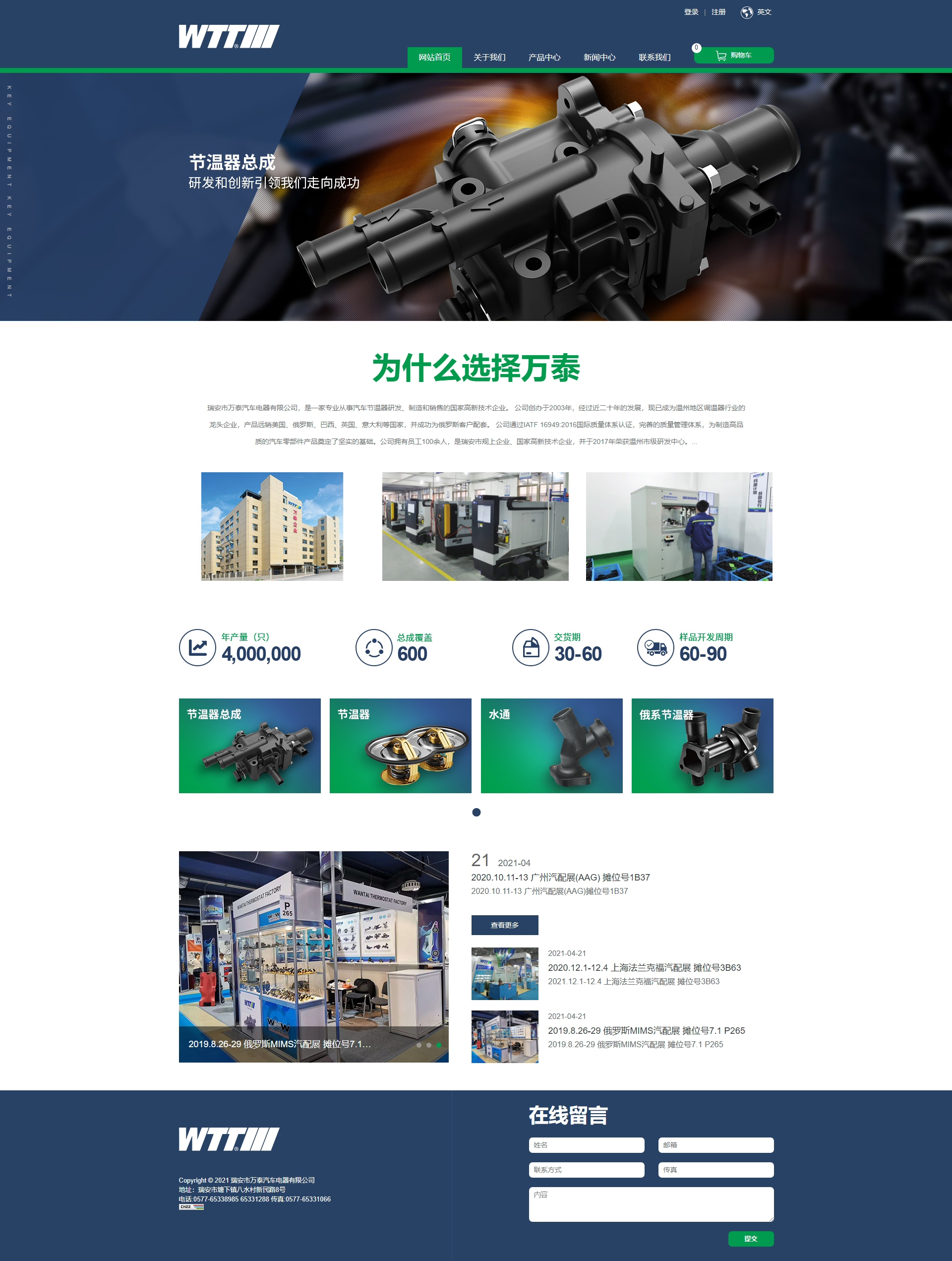 瑞安市萬泰汽車電器有限公司,擁有完整,完整的質(zhì)量管理,采集,生產(chǎn),制造,銷售和管理網(wǎng)絡(luò)的現(xiàn)代化管理體系。公司引進國外先進技術(shù)和設(shè)備,專業(yè)從事制造和銷售汽車各個車系的節(jié)溫器、節(jié)溫器總成、水通等產(chǎn)品。我公司堅持走科學(xué)技術(shù)發(fā)展之路,與高等院校和研發(fā)機構(gòu)長期合作,以“追求先進技術(shù),加強科學(xué)管理,優(yōu)化結(jié)構(gòu)為目標(biāo)”。在產(chǎn)品生產(chǎn)中,努力創(chuàng)造品牌是一種管理理念。