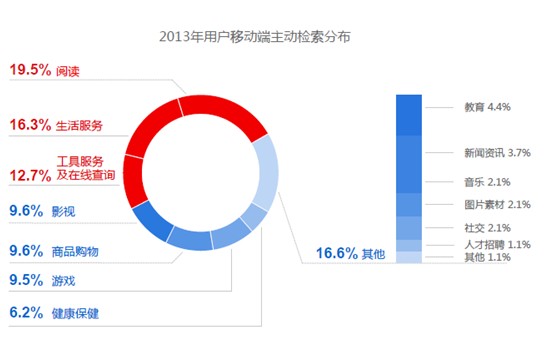 在百度站長(zhǎng)平臺(tái)發(fā)布的《2014年中國(guó)網(wǎng)站運(yùn)營(yíng)發(fā)展趨勢(shì)報(bào)告》中我們得到這樣一組數(shù)據(jù),用戶主動(dòng)檢索的分布主要是集中在生活服務(wù)、商品購物、健康保健、影視視頻相關(guān)、教育相關(guān)、音樂相關(guān)、小說、基于地理位置的信息服務(wù)(LBS)、游戲這幾個(gè)方面,可以看出用戶在這些方面的需求非常旺盛的。